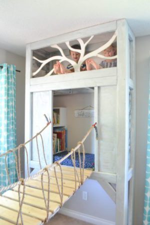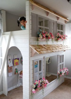 Вообще, двухъярусная кровать очень часто вызывает детский восторг, ведь его можно превратить в домик принцессы, пиратский корабль или «дом в доме». Даже если просто набросать больше подушек и дополнительный плед на «2 этаж» — это уже будет очень круто!