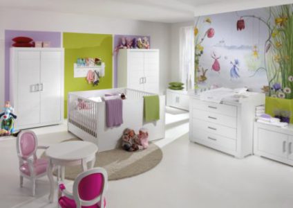 Если вы не против рисунков на стенах, просто покрасьте их в светлый цвет. Пока ребенок маленький, вы самостоятельно сможете нарисовать что-то, оставить отпечатки маленьких ручек и ножек. А когда ребенок подрастет, сможете нарисовать что-то все вместе.