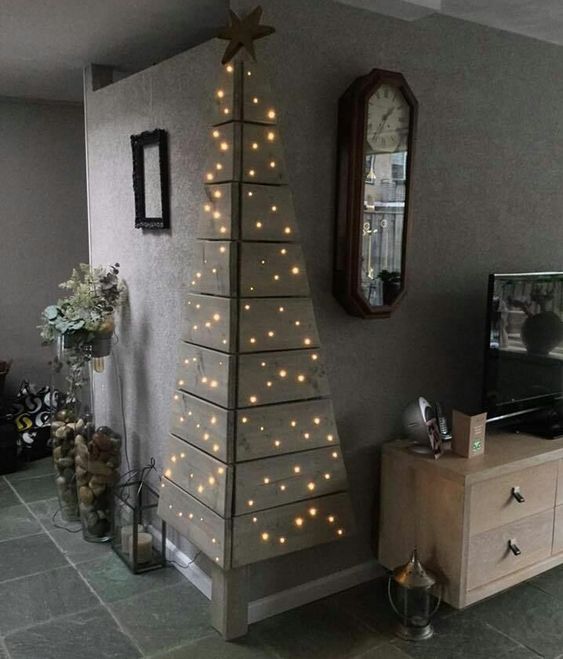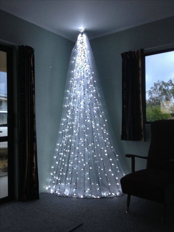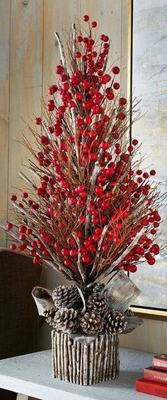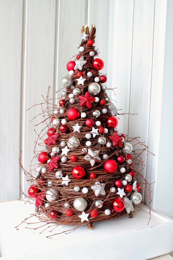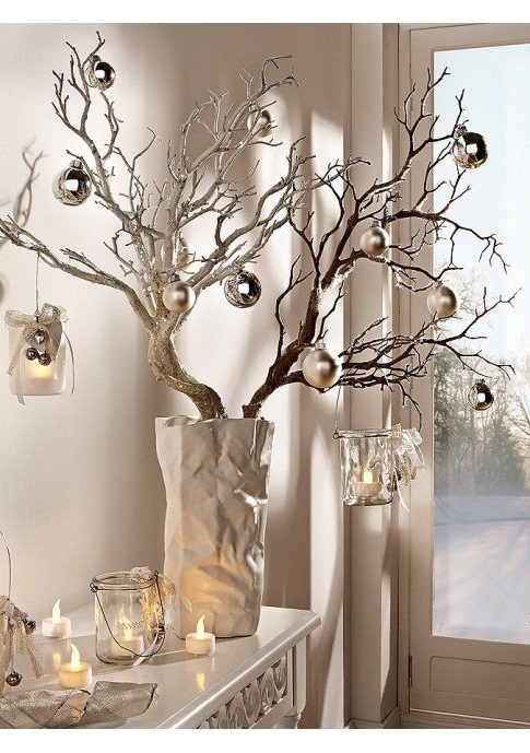 Главный объект нового года – это, конечно же, елка. Не обязательно иметь в доме натуральное дерево. Можно ограничится композицией из живых веток или создать нетрадиционную елку. Вариантов тысячи. Например, несколько идей: