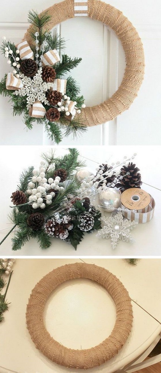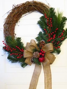 Рождественский венок — это один из основных элементов рождественского декора. Веночки можно не только вешать на дверь или стену, а также использовать как украшение стола. Здесь представлен вариант, как можно сделать веночек самому. Вариантов множество: можно использовать следующие комбинации:<
