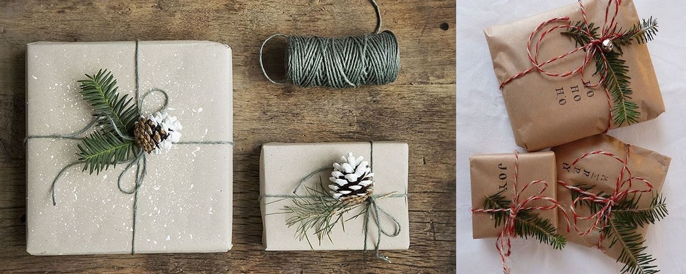 Как стильно, быстро и недорого упаковать подарок. Обычная упаковочная бумага, бечевка и веточка хвойных. Просто, но за то как прилично выглядит!